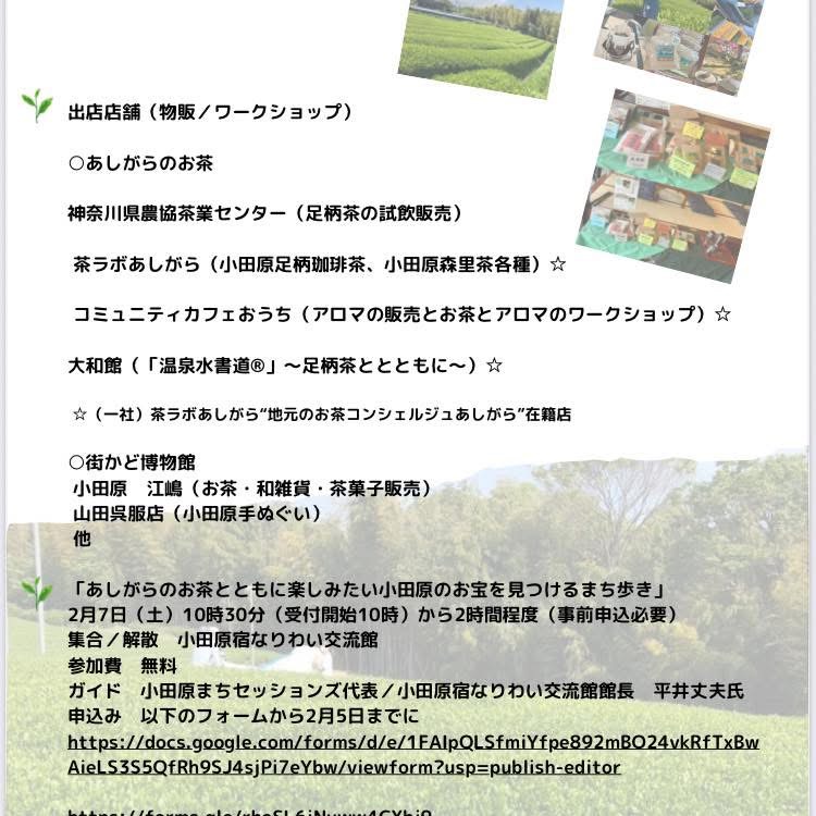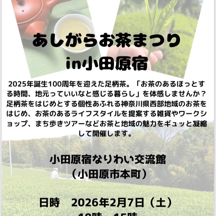 2026.01.21 お知らせ あしがらお茶まつりin小田原宿 開催! あしがらお茶まつりin小田原宿 開催! 2月7日土曜日 小田原市本町の小田原宿なりわい交流館で開催です。 Post Share Hatena Pocket RSS feedly Pin it 明けましておめでとう🌅ございます㊗️ 前の記事 出店のお知らせ 次の記事